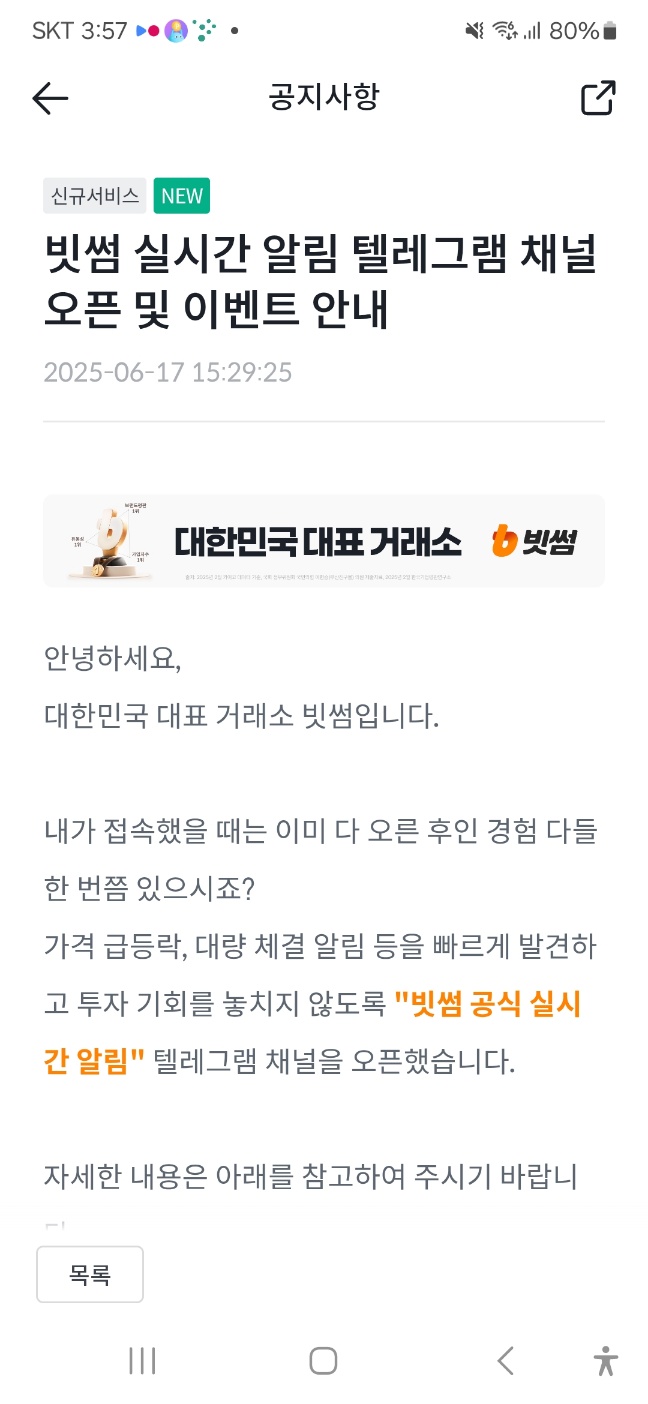 진행방법 : 텔레그램 빗썸 채널 입장 후 이벤트 신청 폼 작성 끝