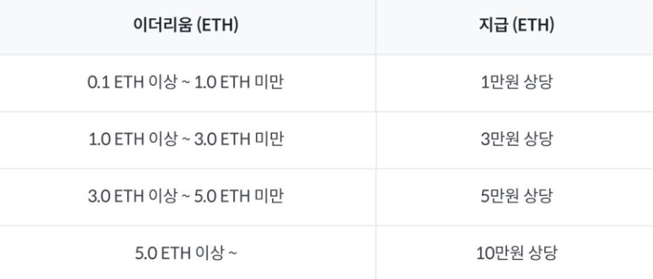 이벤트 3. 이더리움 고정형 스테이킹 수량 조건 충족시 이더리움 지급
