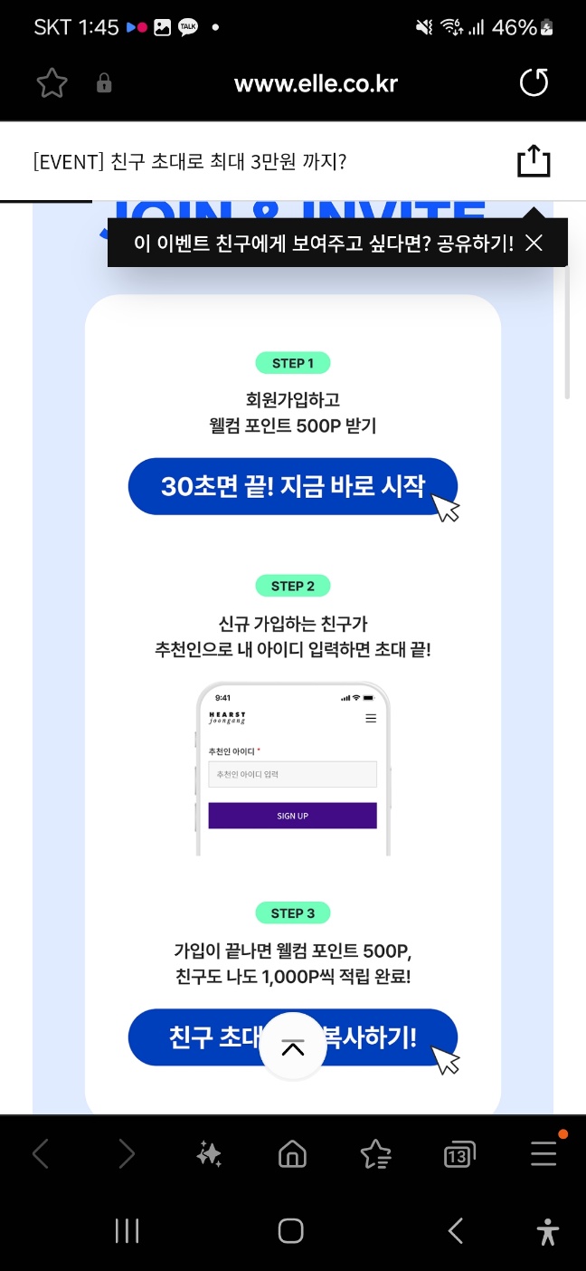 지금 친구 추천시 1명당 1천포인트 받습니다.