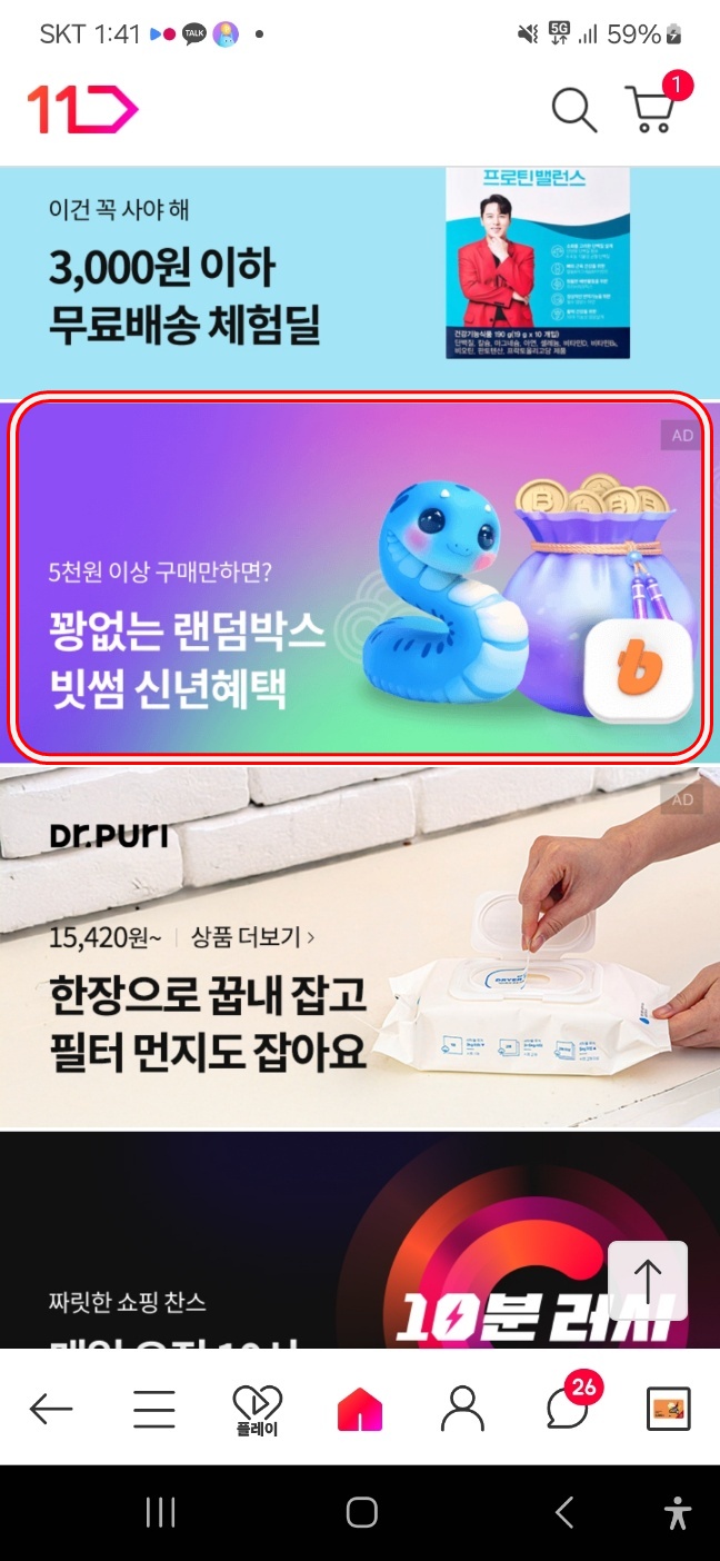 - 11번가 어플 들어가셔서 첫번째 사진에 배너 클릭(동그라미 숫자부분)