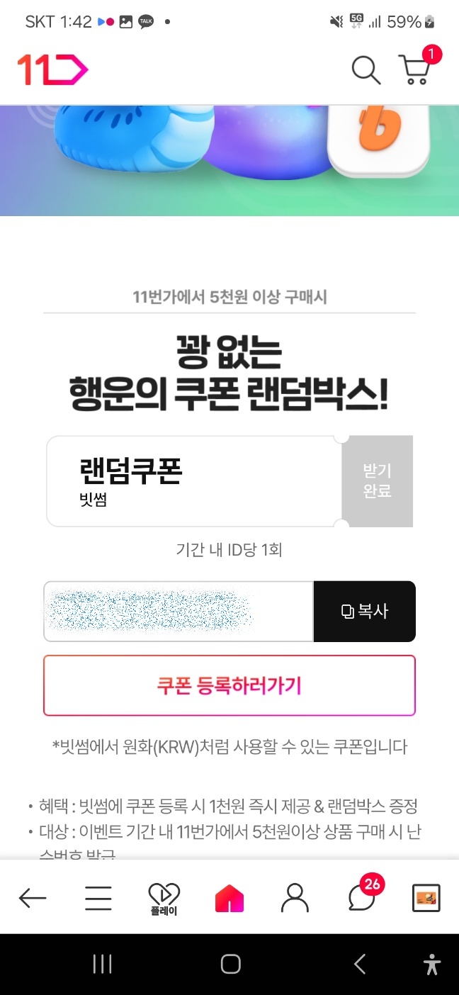*11번가에서 5천원 이상 구매 후 쿠폰 발급 누르시면 됩니다.