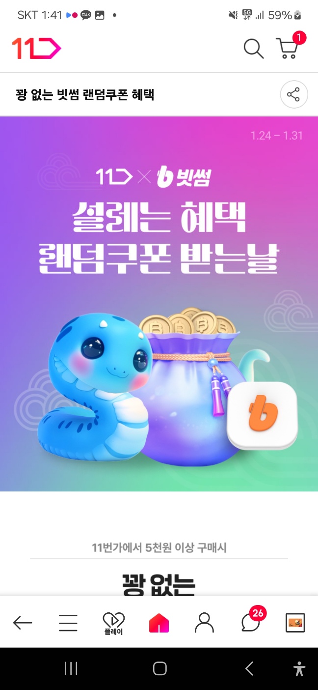 11번가에서 5천원 이상 구매시 1천원 즉시제공 + 랜덤박스 증정